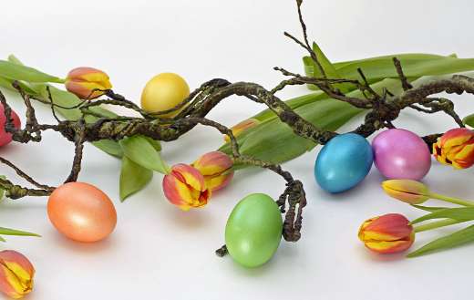 Atmospheric Easter decoration with colorful eggs online jigsaw puzzle.